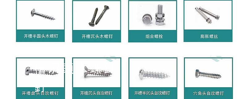 木螺釘有十字槽沉頭、十字槽半沉頭、十字槽圓頭、開槽(一字槽)沉頭、開槽半沉頭、開槽圓頭、六角頭等幾種,公稱直徑有1.6、2、2.5、3、3.5、4、5、6、7、8、10等系列,長度有6、8、10、12、16、20、25、3