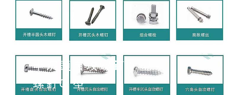 (鐵板牙自攻螺絲) B-2: Plastic Tapping Screw. (塑膠用,自攻螺絲) C: Wooden Screw : 木工螺絲 D: Drywall Screw :水泥墻螺絲 E: Self Drilling Screws鉆尾螺絲(不銹鋼鉆尾螺絲,復合材料鉆尾螺絲) F:膨脹螺絲,四片膨脹螺絲又