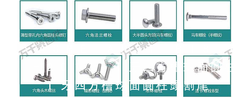 1、Flat:平頭 (鎖入后,頂部與工作件齊平)2、Oval:色拉頭、O頭、半沉頭 3、Round:圓頭 4、Pan:圓扁頭 5、Truss:大圓扁頭 6、Hex:六角頭 A-5:Finish Code/外觀處理。公制自攻螺絲 :于品名后方直接標(biāo)示 Tapp 主要分類包括普通螺絲、機(jī)螺絲、自攻螺絲和膨脹螺絲三種。 有頭螺釘Cap screw 過去限于全牙的扣件。 六角頭螺釘Hex cap screw與大六角螺栓Hex bolt 顧名思義為頭部為六角型的外螺紋扣件,設(shè)計(jì)為使用扳手轉(zhuǎn)動(dòng)。依照ASME B18.2.1標(biāo)準(zhǔn),六