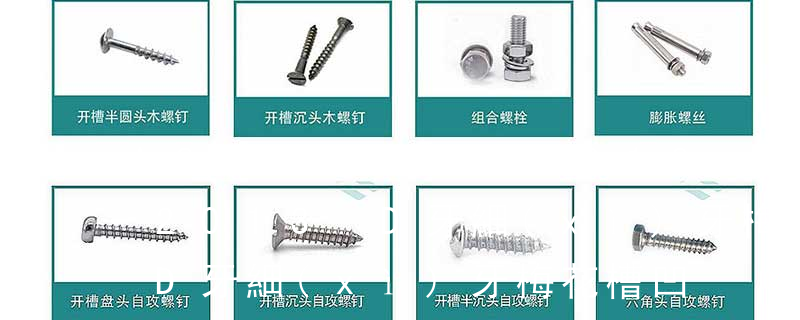 主要分類包括普通螺絲、機(jī)螺絲、自攻螺絲和膨脹螺絲三種。有頭螺釘Cap screw 過去限于全牙的扣件。六角頭螺釘Hex cap screw與大六角螺栓Hex bolt 顧名思義為頭部為六角型的外螺紋扣件,設(shè)計(jì)為使用扳手轉(zhuǎn)動。依照ASME B18.2. 1.機(jī)螺釘 2.自攻螺釘 3.鉆尾螺釘 4.墻板釘 5.纖維板釘 6.木螺釘7.六角木螺釘 8.不脫出螺釘 9.組合螺釘 10.微型螺釘 11.家具螺釘 12.電子螺釘 頭型 :1.六角頭(hexagon head) 2.六角頭法蘭面(hexagon head